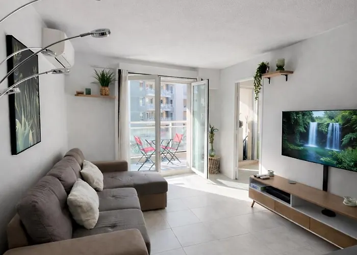 Apartamento Le Soleil Nicois, Proche Du Port cuenta con un balcón y una zona de estar, y comodidades como climatizador. Este apartamento ofrece 1 cuarto de baño. Además, dispone de un inodoro separado y una ducha.